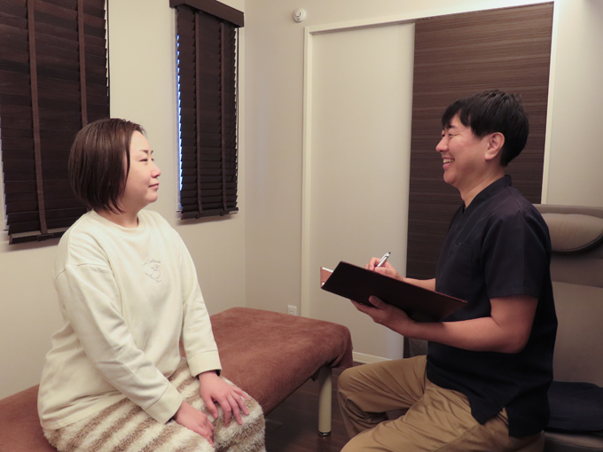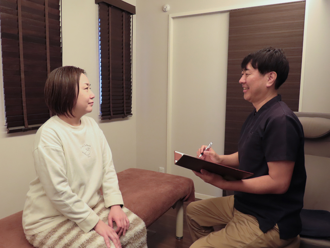 施術後のお体の状態についての説明や、今後についてのご案内をさせていただきます。