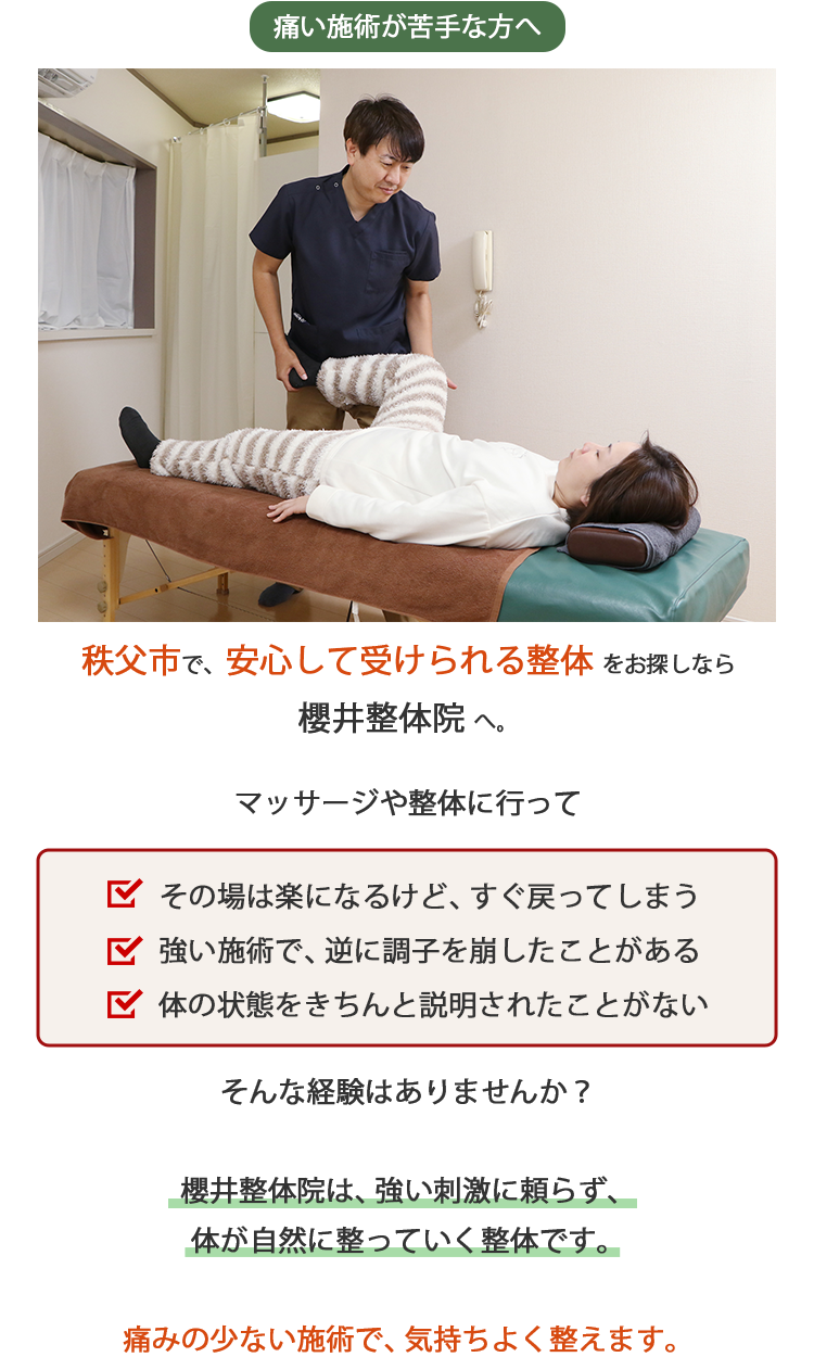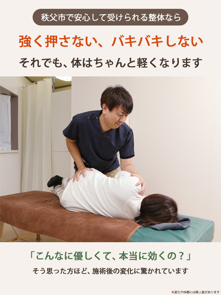 だからこそ私は、ご利用者さまのお体に負担をかけることのない、安心して受けていただける整体にこだわっています。